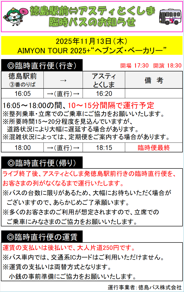 いつも徳島バスをご利用いただき、誠にありがとうございます。