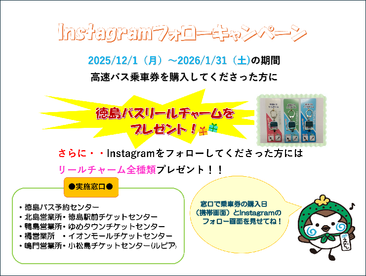 このたび対象のお客様に徳島バスグッズをプレゼントするキャンペーンを実施いたします!