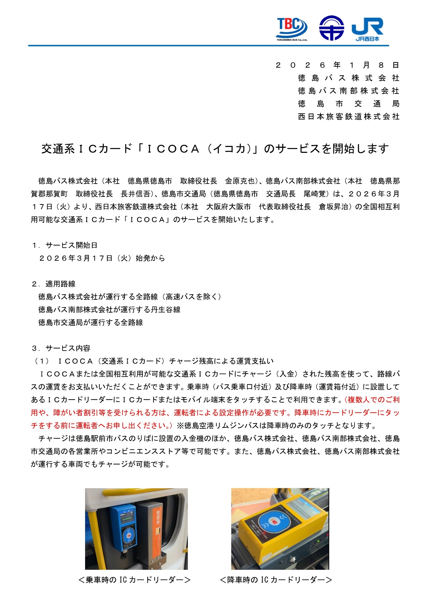 交通系ICカード「ICOCA(イコカ)」のサービス開始について
