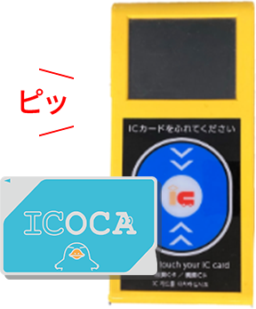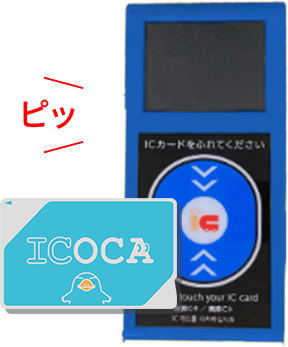 乗車口に設置している青色のICカードリーダーにICOCAを「ピッ」と音がするまでタッチして乗車してください。
