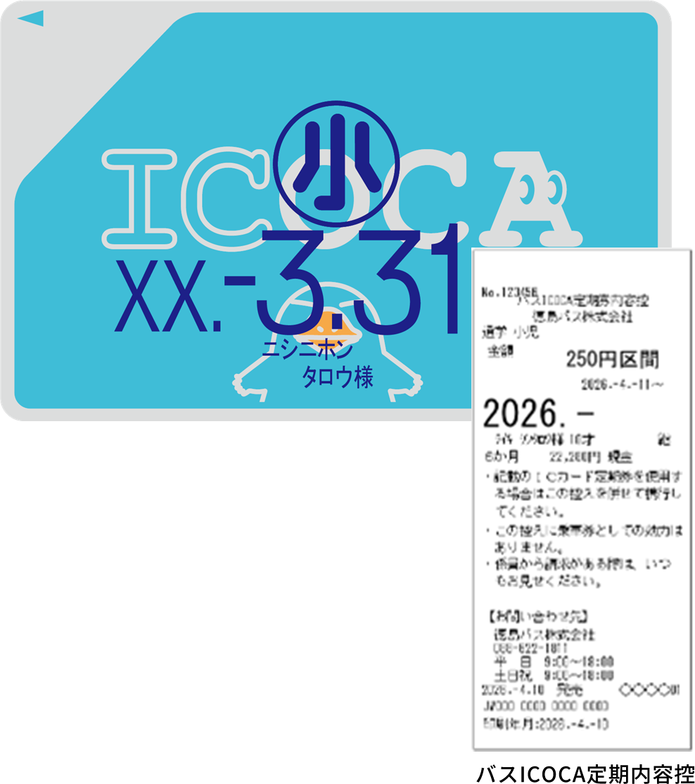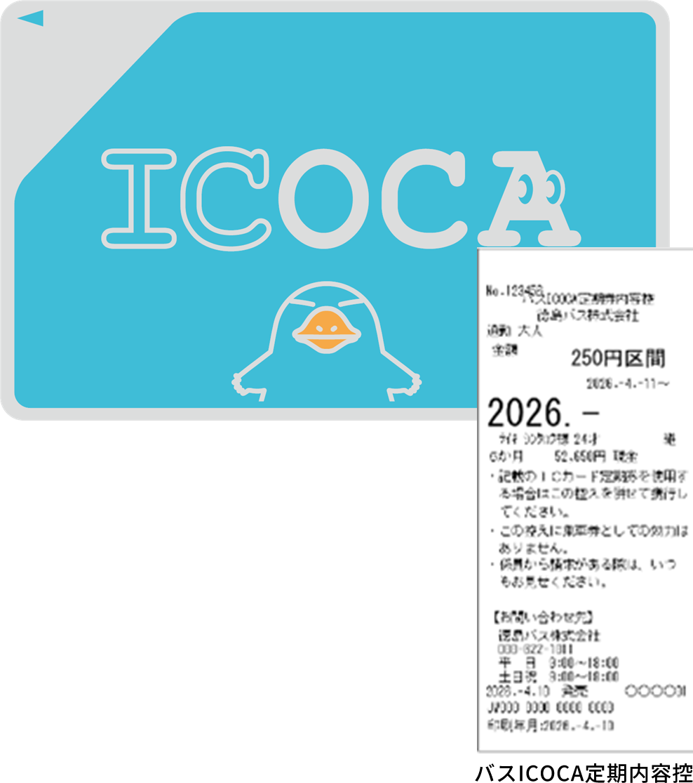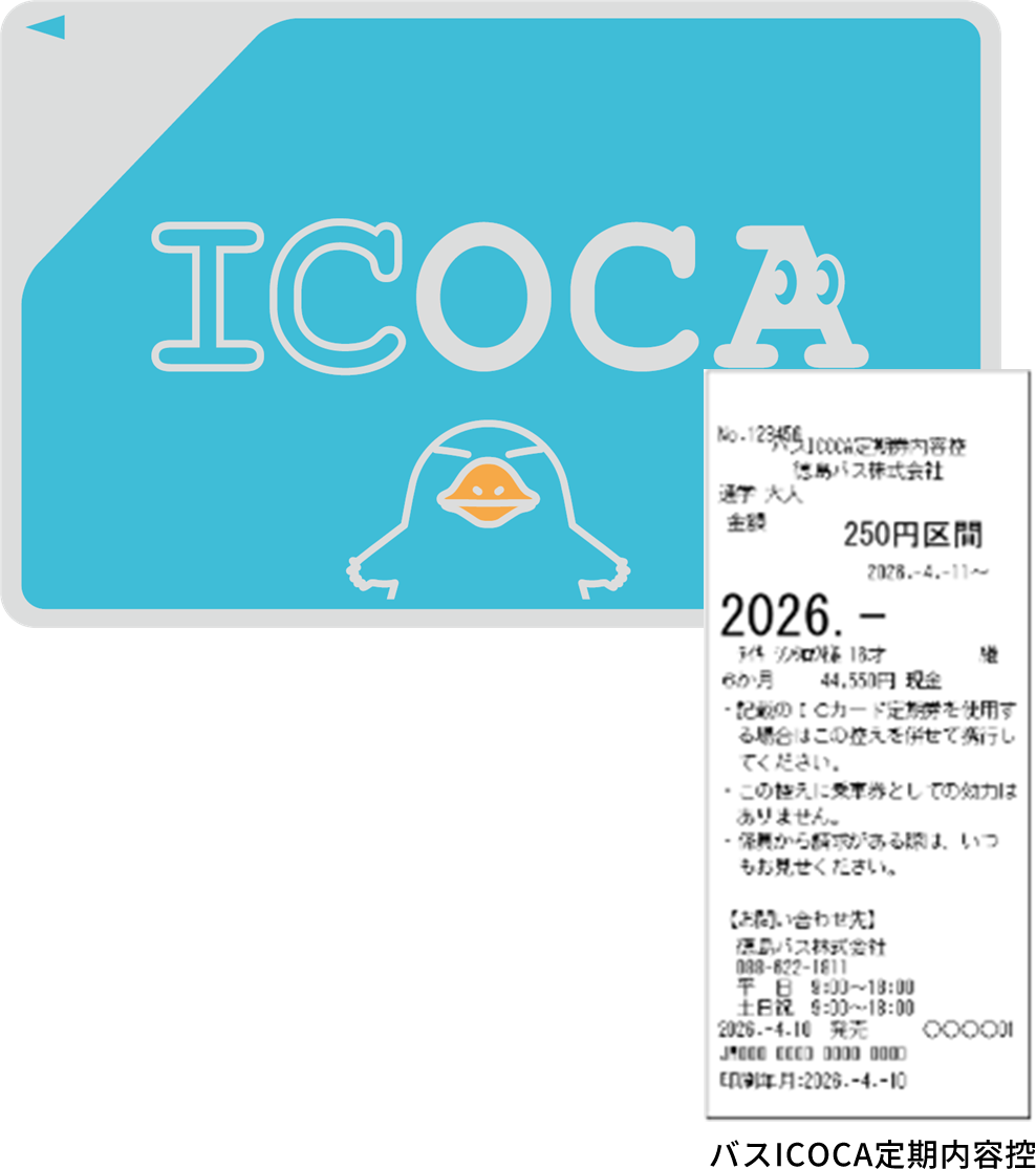 バスICOCA定期券は、バス定期券とICカード機能をあわせ持ったカードです。